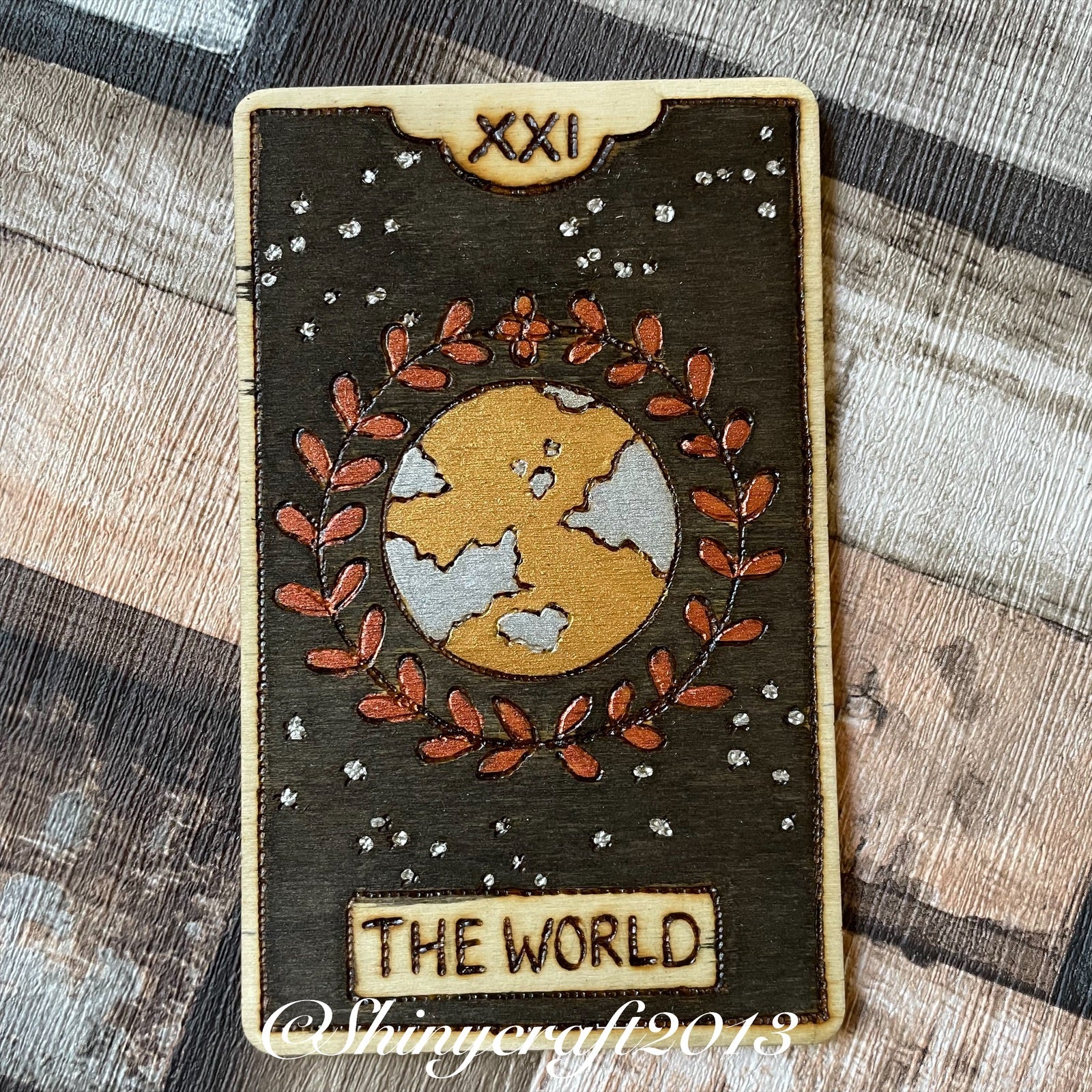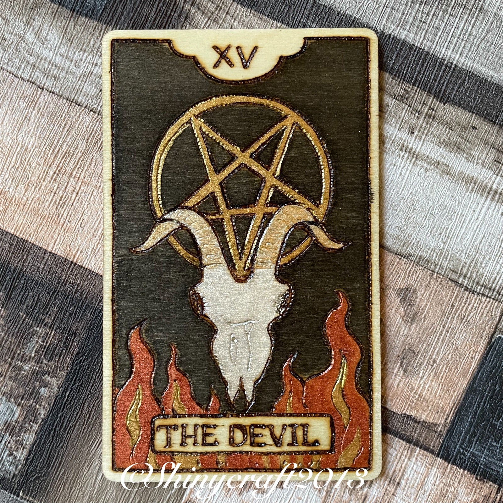 Wooden plaque with tarot design, perfect for decorating your altar space.
